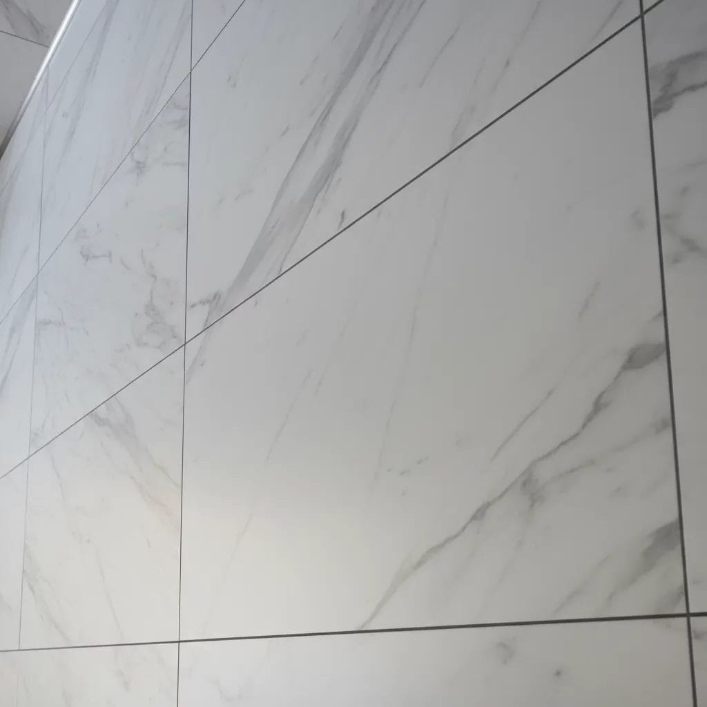 Large-format installations feature minimal grout lines. We use high-performance grouts designed for large tiles, ensuring consistent color and preventing shrinkage cracks.