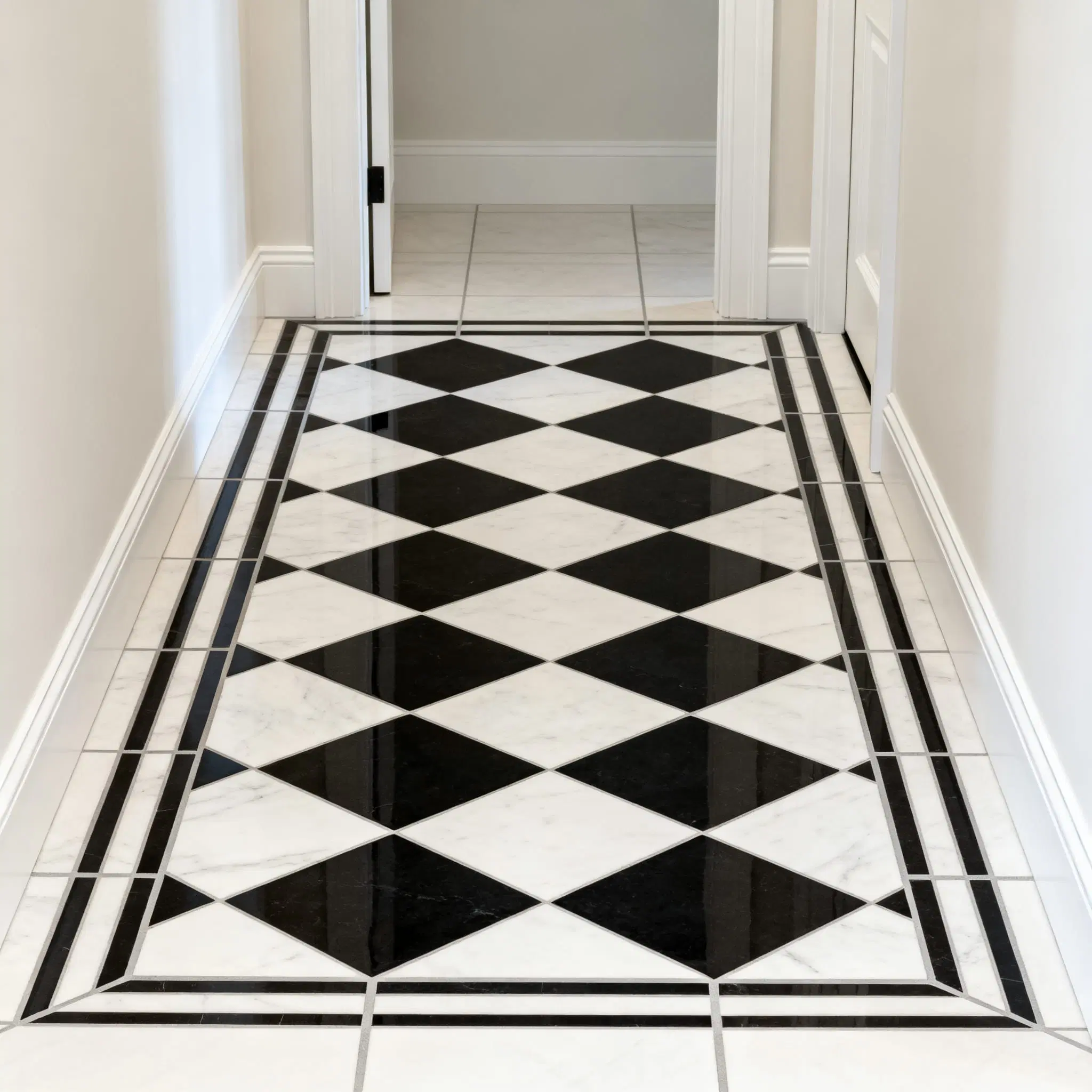 Precise symmetry planning and grout-line alignment to ensure professional results and visual balance.