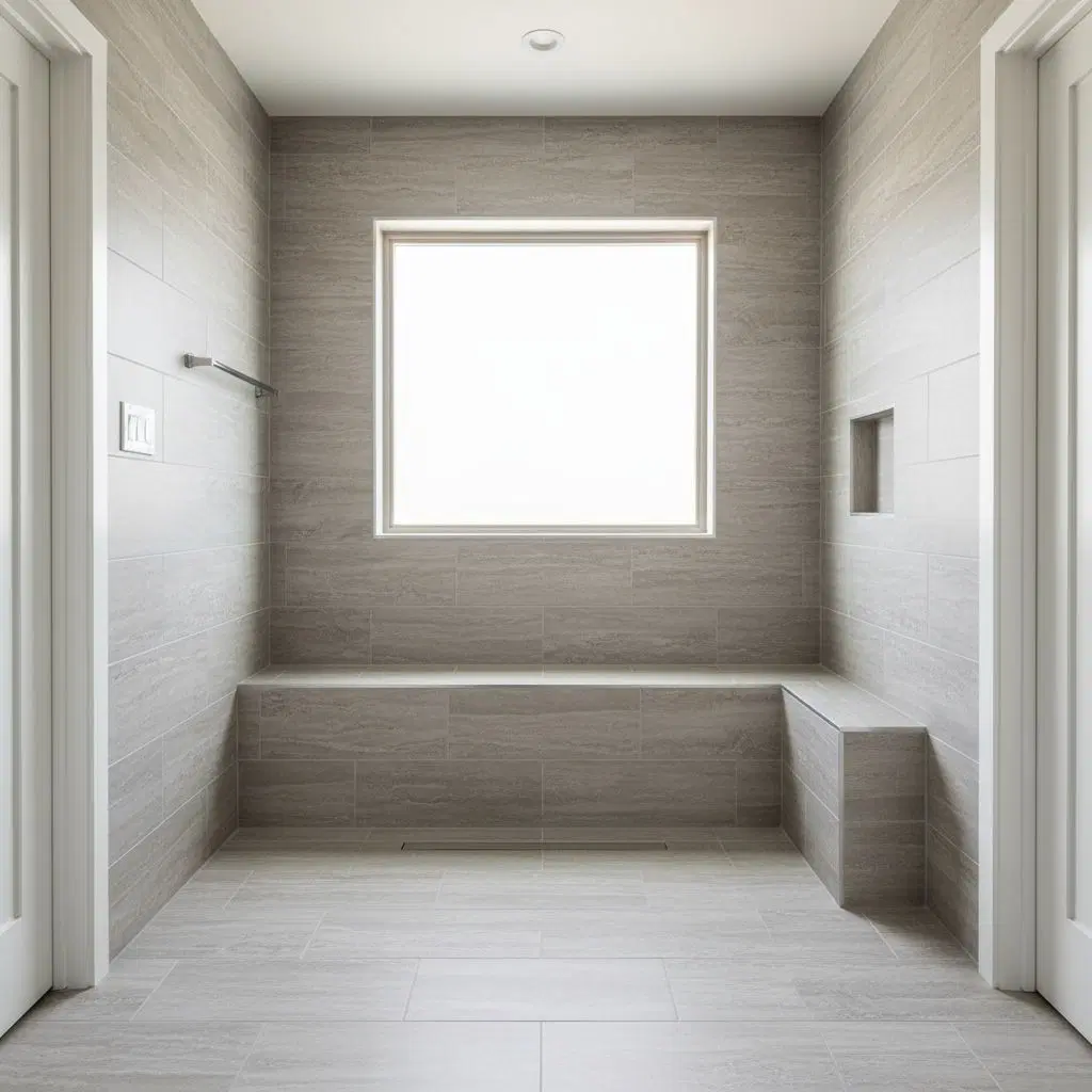 Curbless shower tile installation focused on accurate slope and seamless transitions. Waterproofing and substrate preparation support barrier-free access and long-term performance.